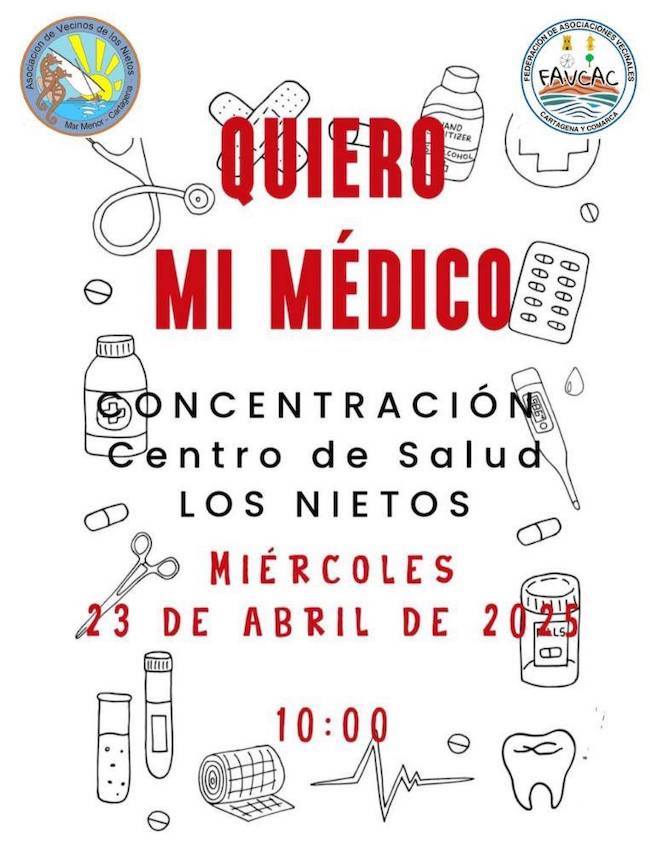 La asociación de vecinos de la localidad marmenorense y la Federación Vecinal de Cartagena y Comarca convocan a una concentración el miércoles 23 de abril bajo el lema 'Quiero mi médico' para tratar de evitar "el cierre del consultorio del pueblo", exponen.
