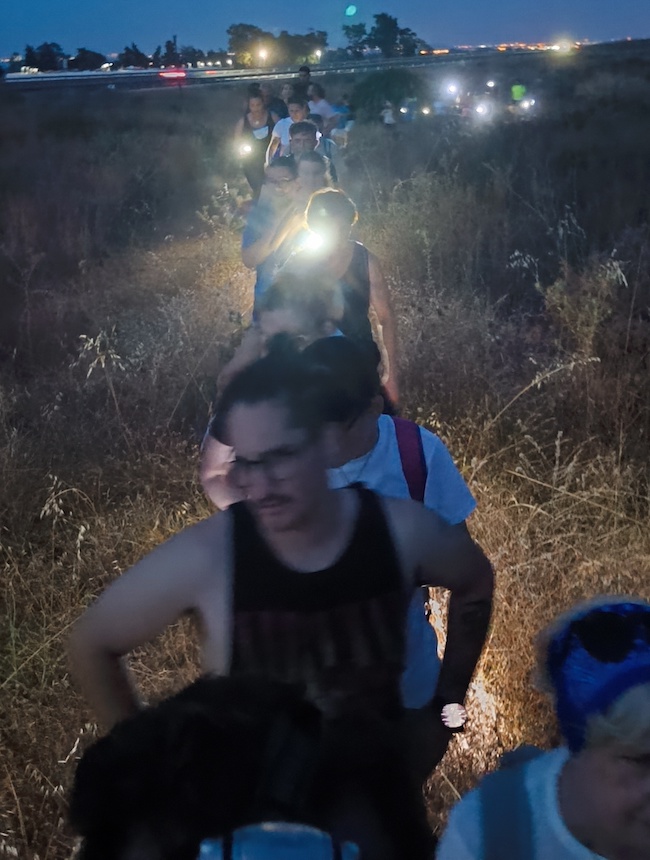 Esta actividad, que dura unas cuatro horas, está identificada como las 'luciérnagas' porque en el tramo final del recorrido los participantes se 'iluminan', pues recurren a móviles y linternas para dar visiblidad a sus pasos. Reseñar que entre los caminantes estuvieron los ediles Aurora Ródenas, Loly Mendoza y Daniel Cano.