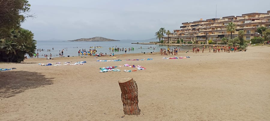 Vecinos y trabajadores de ese entorno nos apuntan que lo normal es ver entre doscientos y más de cuatrocientos chavales de colegios disfrutando de esta playa situada en la zona del Mar Menor de La Manga cada día, con lo que se convierte, sin necesidad de esperar al verano y pese a que aún no está funcionando la caseta de socorristas, en uno de los puntos de la costa cartagenera que más personas distintas recibe cada año.