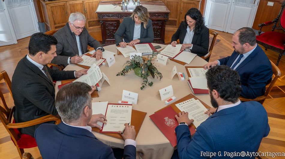 Los regidores de los siete municipios de las comarcas del Campo de Cartagena y del Mar Menor se vinculan para defender proyectos comunes y captar financiación. Mediante un acuerdo rubricado, unen sus fuerzas para la obtención de recursos, mejora de las infraestructuras y defensa de los intereses generales ante cualquier administración.