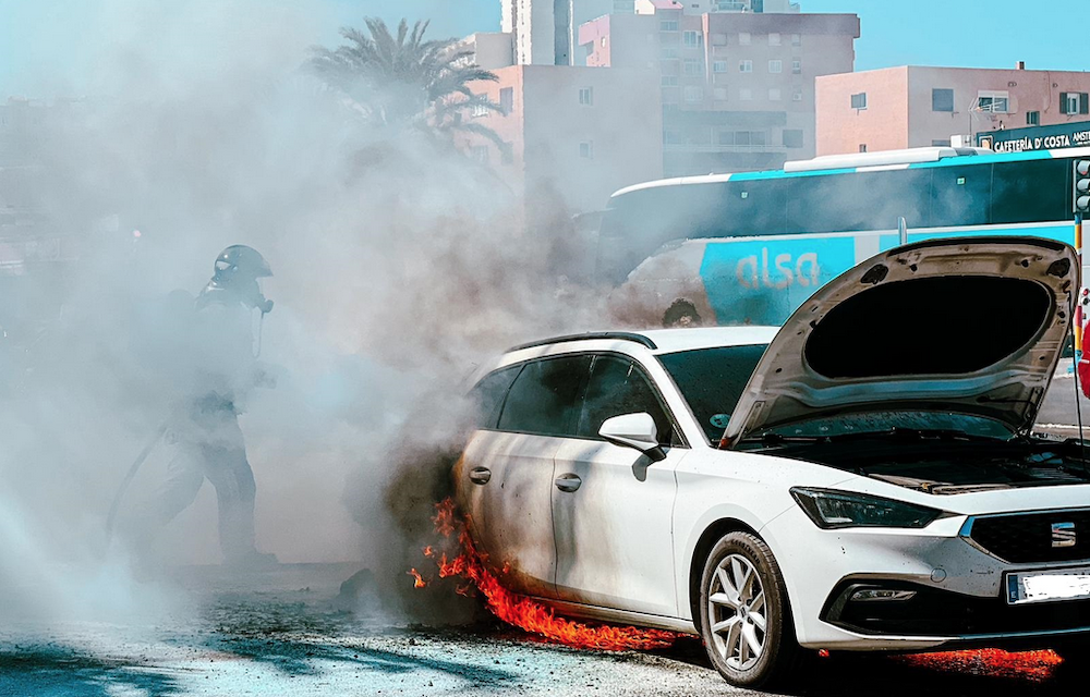 A las once de la mañana, una llamada al centro de coordinación de Emergencias 1-1-2 solicitaban la presencia de bomberos en la Gran Vía, dentro del municipio de Cartagena, porque, según la llamante, el vehículo que había alquilado había comenzado a arder en mitad de la calzada. Al lugar se han desplazado unidades de bomberos de Cartagena y del Consorcio de Extinción de Incendios y Salvamento que han procedido a sofocar el incendio.