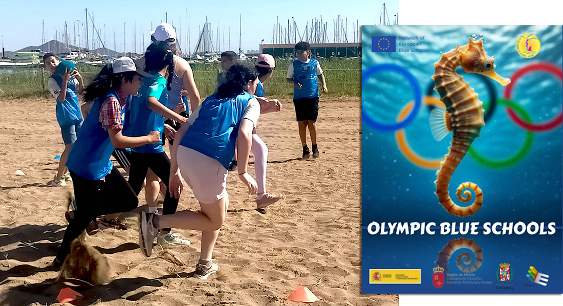 Los alumnos del CEIP Félix Rodríguez de la Fuente han vuelto a montar las aulas hoy en la playa y ahora centran su atención en las ‘olimpiadas’ que celebrarán este viernes después de que el fuego sagrado llegue en barco procedente de Cartagena, tras haber sido encendido en el Teatro Romano.