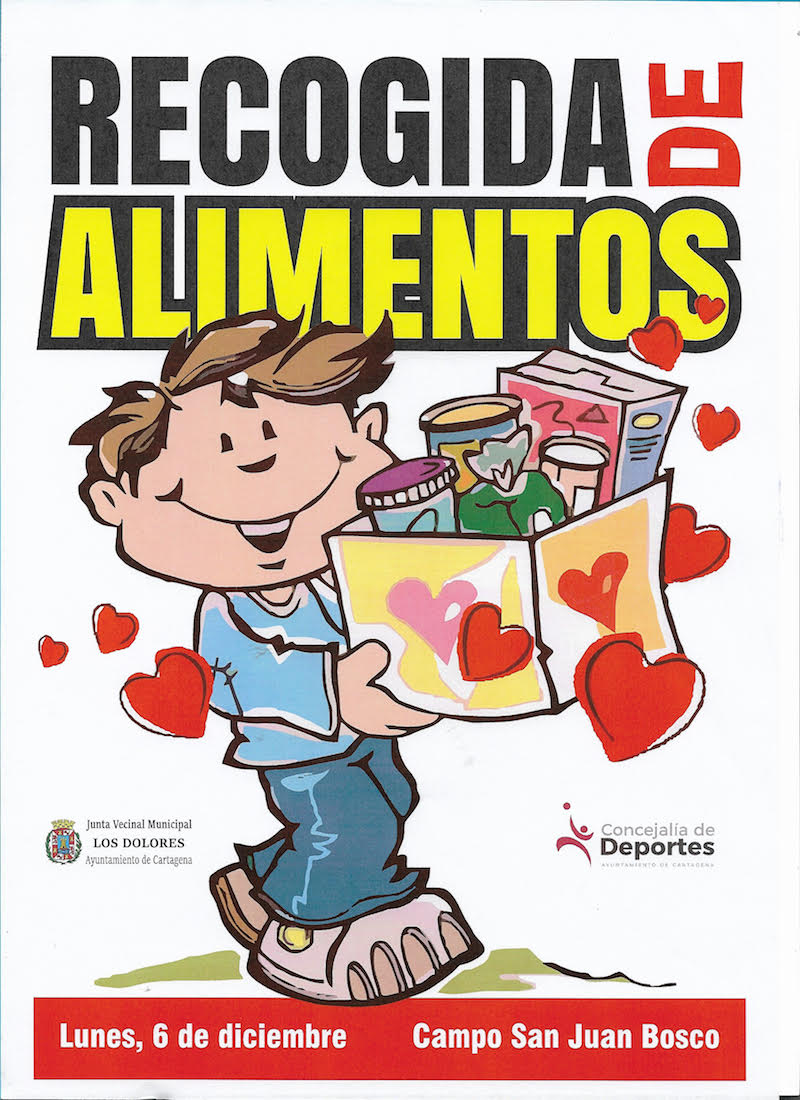 Recogida de alimentos el próximo día 6 en el campo San Juan Bosco de Barriada Hispanoamérica-Los Dolores, sede del club de fútbol del barrio de Los Dolores. Colaboran la Junta Vecinal y la Concejalía de Deportes.
