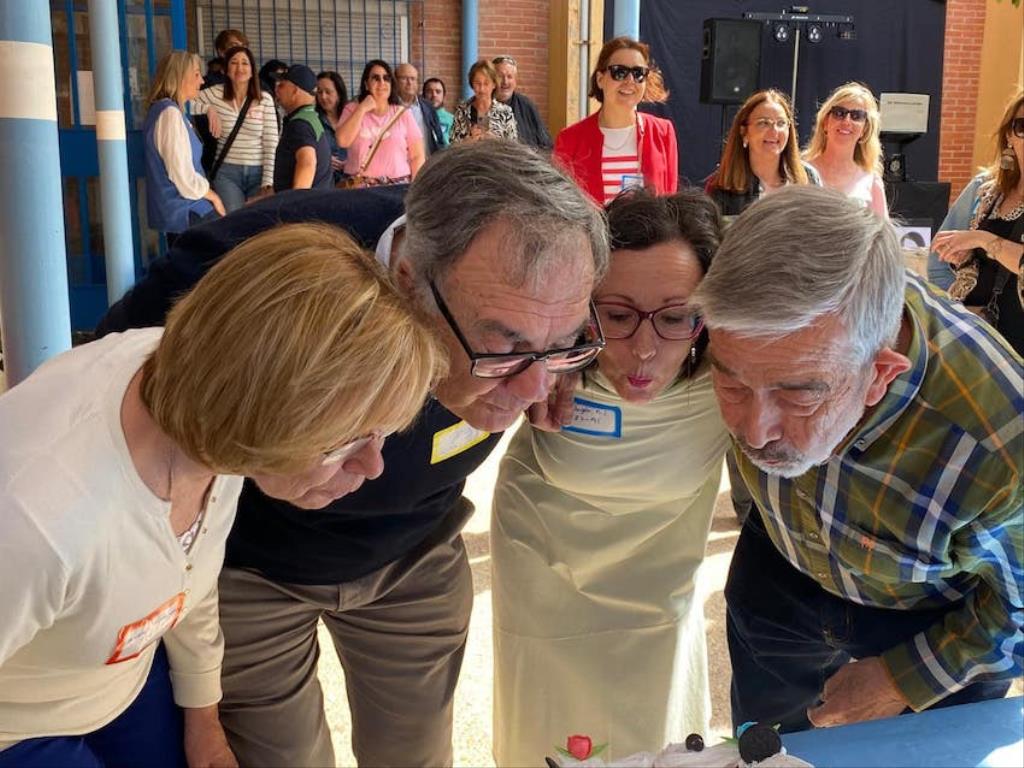 Sobre estas líneas se observan a los cuatro directores de este cerca de medio siglo de andadura que participó en la convivencia, que también contó con profesores y empleados de diferentes cursos. Ellos son Diego Bruno Pallarés, María Ángeles Pérez Ocón, María Ángeles Martínez Sánchez (la actual rectora del instituto) y José Ramón Pérez Sánchez, siendo los que soplaron las llamas de la tarde del 40 cumpleaños de un centro docente que sigue acumulando cursos y vivencias.