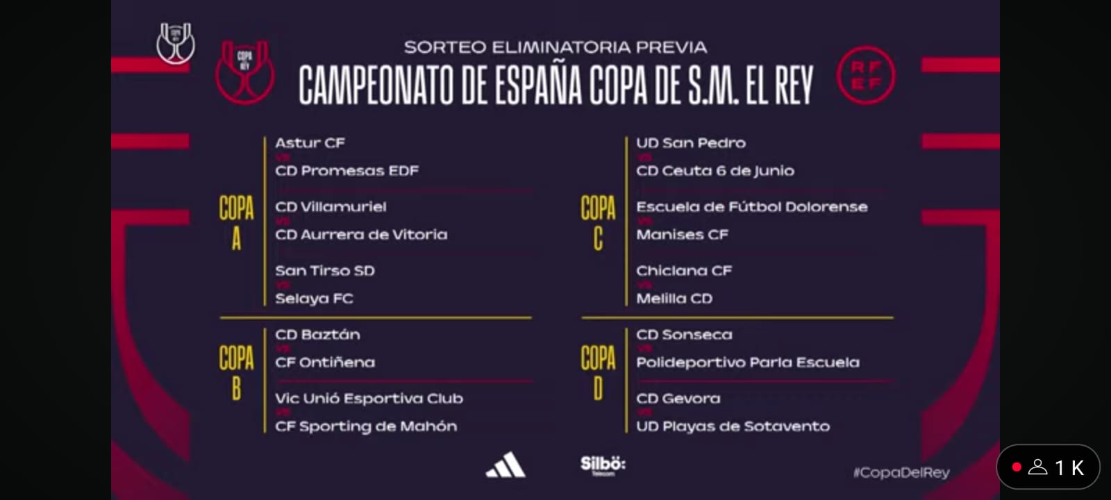 El equipo de segunda autonómica del CD Dolorense que la pasada campaña, como conjunto de la Liga Sub-23 logró pasaporte copero, se medirá al Manises de Valencia, cuyo primer equipo está en regional preferente, en la eliminatoria previa de la Copa del Rey. Aún no se conoce si se disputará en el campo San Juan Bosco de Salesianos o en otro estadio de Cartagena. El vencedor se enfrentará a finales de octubre a un conjunto de primera división profesional que no esté disputando competiciones europeas.