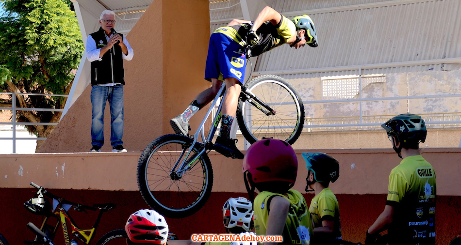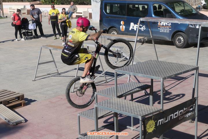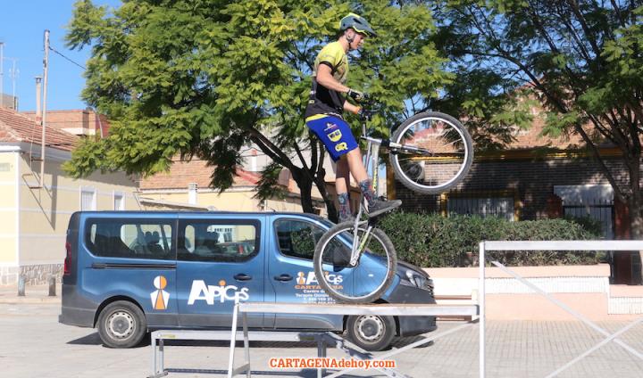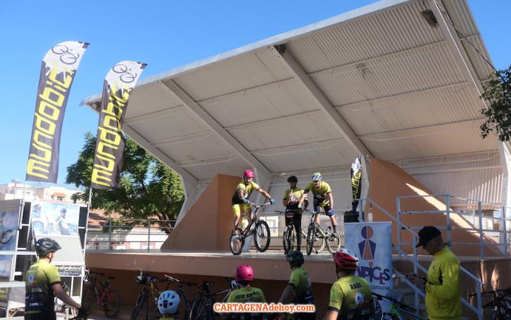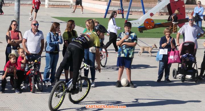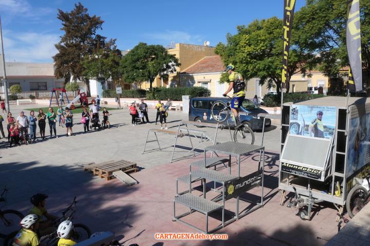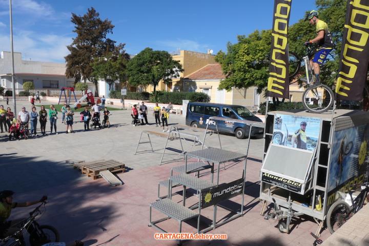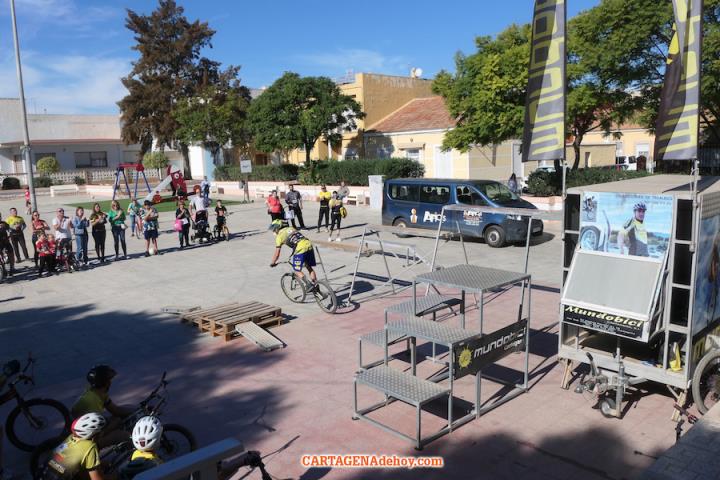 El punto de destino fue la plaza de la Virgen de los Dolores, donde tuvo lugar una exhibición de la escuela 'Mundobici', que dirige el dolorense Daniel Cegarra, quien saboreó en dos ocasiones el título mundial y que es padre de la gran promesa de este deporte, quien ya está teniendo éxitos internacionales.