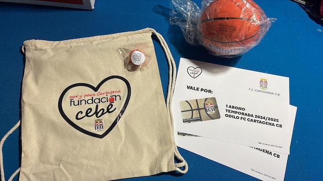El certamen pictórico, que alcanza su XVIII edición y que es el de mayor participación presencial en la Región de Murcia con cerca de doscientos cincuenta dibujantes cada año en Salesianos, volverá a entregar obsequio a todos los que lleven a cabo sus dibujos sobre 'Navidad y deporte' este próximo sábado en las instalaciones de Salesianos. En la imagen, algunos de los productos entregados por colaboradores para las bolsas de regalos, premios y rifa final.
