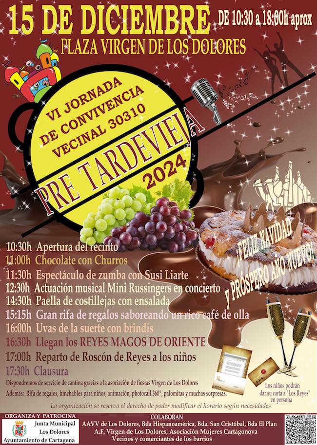 Cartel de la fiesta del domingo en la plaza de la Virgen de los Dolores para vecinos de Los Dolores, Castillitos, Los Jabatos, Hispanoamérica, San Cristóbal y El Plan, además de visitantes.