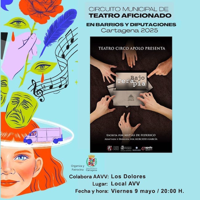 Tres parejas acuden con la intención de tratar sus conflictos, pero se encontrarán con una sesión más intensa de la esperada. Es la trama de la nueva obra de la compañía del Teatro Circo Apolo de El Algar, que es tarde se representa esta tarde en el local de la asociación de vecinos con entrada gratuita, dentro del circuito municipal de teatro en barrios y pueblos de las diputaciones.