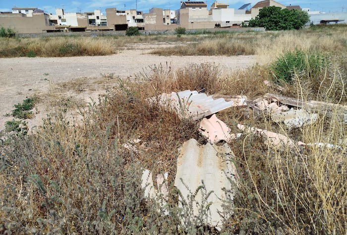 Denuncian que echan escombros con amianto en un solar de Los Dolores
