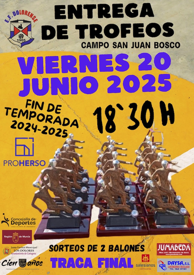 La escuela de fútbol de Los Dolores celebrará el fin del ejercicio 24/25 este viernes por la tarde en el campo San Juan Bosco con la entrega de trofeos y una fiesta con sorteo de balones y traca final.