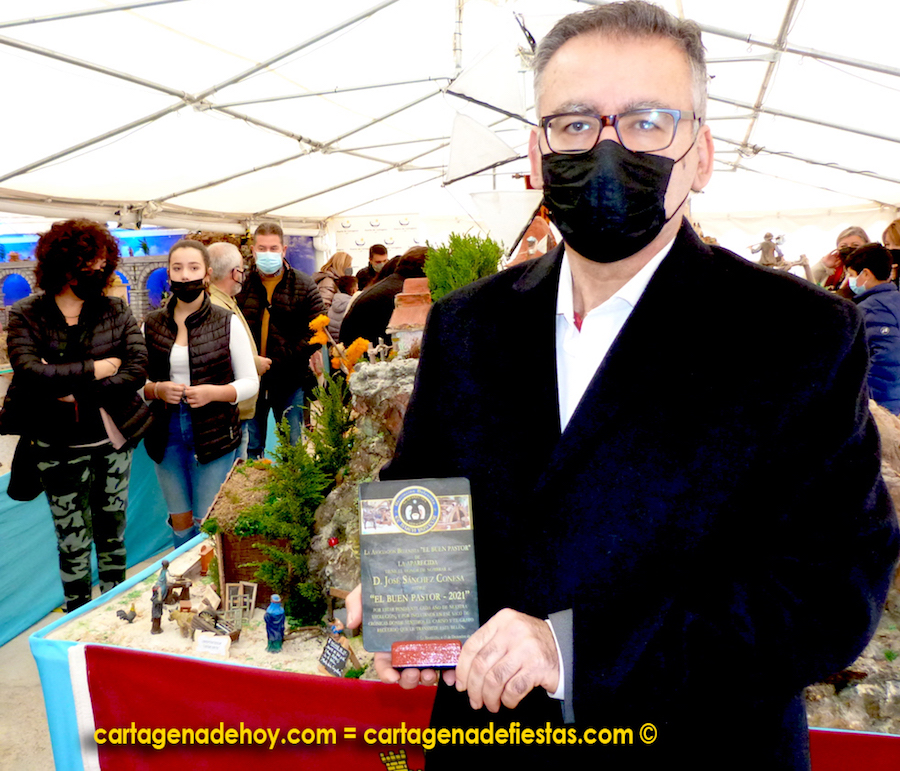 La asociación belenista ha distinguido al cronista oficial de Cartagena junto a Elena Ruiz, al Grupo Folklórico de La Palma y a Gelu Salazar antes de inaugurar un monumental montaje en el que Jesús nace en el novedoso Teatro Romano ubicado junto al monte de la Concepción, siendo otras novedades la escena del empadronamiento y la presencia del Vesubio. GALERÍA DE FOTOS (pinchar aquí)
