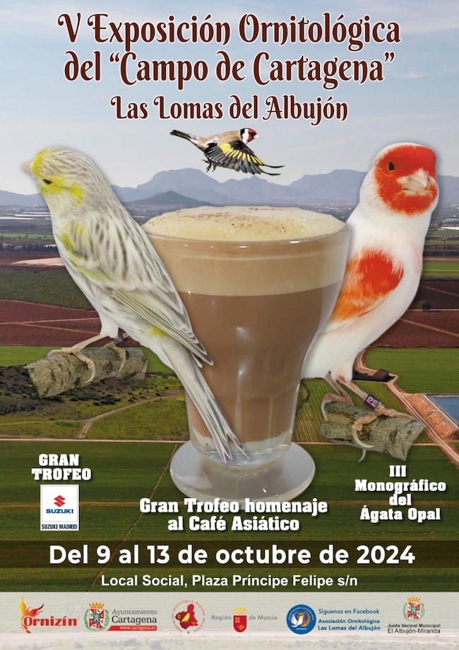 La localidad de Las Lomas del Albujón ya calienta motores de cara a la celebración de la V Exposición Ornitológica del Campo de Cartagena, que arranca este miércoles 9 de octubre en el local social de esta localidad. El cartel en esta ocasión está protagonizado por una bebida tan tradicional de esta diputación como es el café asiático.