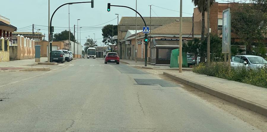 “La Dirección General de Carreteras de la Comunidad Autónoma debe asumir su responsabilidad, eliminando baches, asfaltado cuarteado y otras deficiencias”, indica María Antonia Pérez Galindo, edil de MC sobre la vía principal del pueblo de La Aparecida.