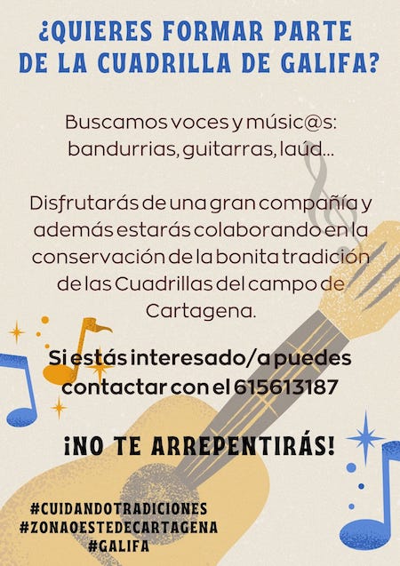 Leer más...La cuadrilla de cante de pascua de esta localidad del oeste cartagenero inicia una campaña de captación de voces e instrumentos (bandurrias, guitarras, laúd…) .
