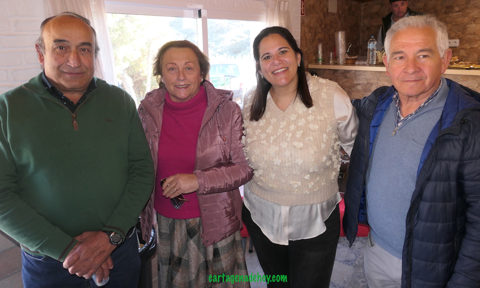 Esta gran convivencia comienza sobre las dos de la tarde y el espacio donde tiene lugar es el gran salón del 'Rincón del Nene', inaugurado en enero de 2023. Por ahí fueron pasando numerosos amigos, vecinos e invitados del matrimonio, desde representantes de la política, como los ediles Enrique Pérez, Manuel Torres e Isa Andre, o la diputada Carmina Fernández, además de la presidenta de la Junta Vecinal de Perín, Josefa Méndez, y una representación de asociaciones y de la sociedad y las artes de Cartagena, como el escultor Pedro José Pérez.