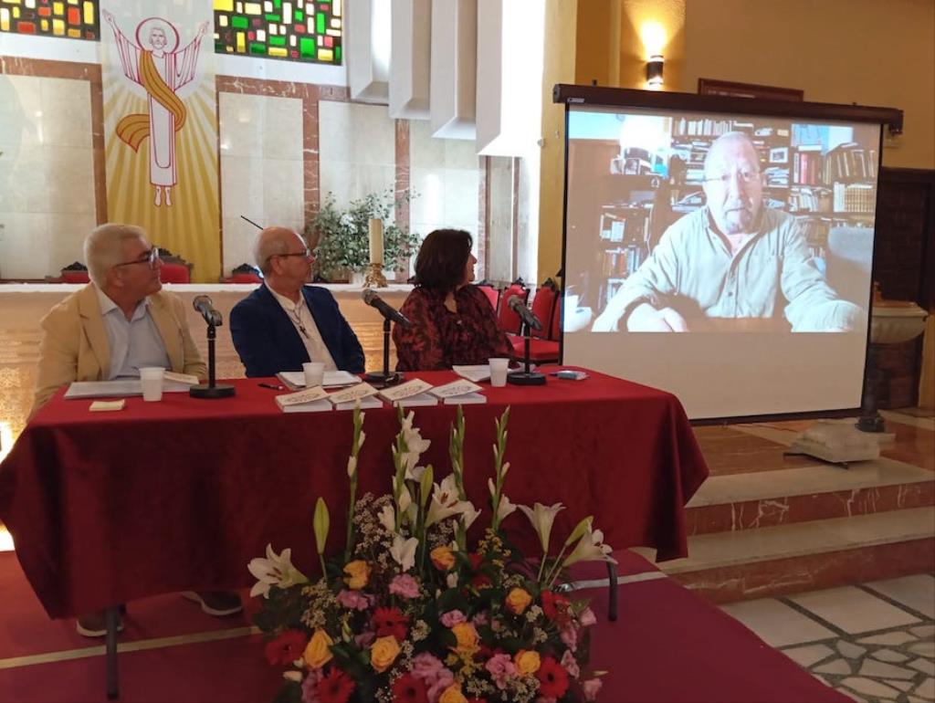 La apertura del acto ha corrido a cargo de Águeda Sánchez, Licenciada en Pedagogía y en Psicopedagogía; y Ginés González, Licenciado en Ciencias Eclesiásticas y en Filosofía; quienes han dado la palabra al padre José María Campos, Licenciado en Teología, poeta, escritor, pintor, artista y Capellán de la Santa de Totana quien, mediante videoconferencia, ha recordado al coautor del libro, el sacerdote fallecido Juan Pedro Fernández, mediante una explicación de su persona y obra.