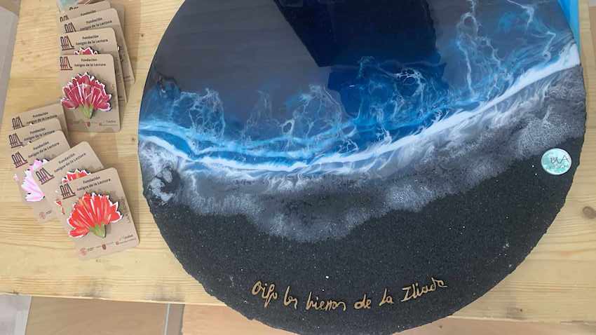 Tras la mesa redonda, se entregó a la familia del poeta una placa hecha a mano con el verso manuscrito "Oigo los hierros de la Ilíada", y todos los asistentes recibieron a modo de facsímil un marcapáginas de La Isla del Tesoro, la mítica librería -ya extinta- que José María Álvarez tenía en la plaza del Icue en Cartagena y que fue lugar de encuentro cultural durante años.