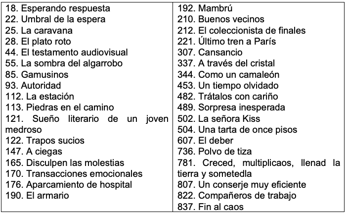 Los títulos de los microrrelatos finalistas son los siguientes: