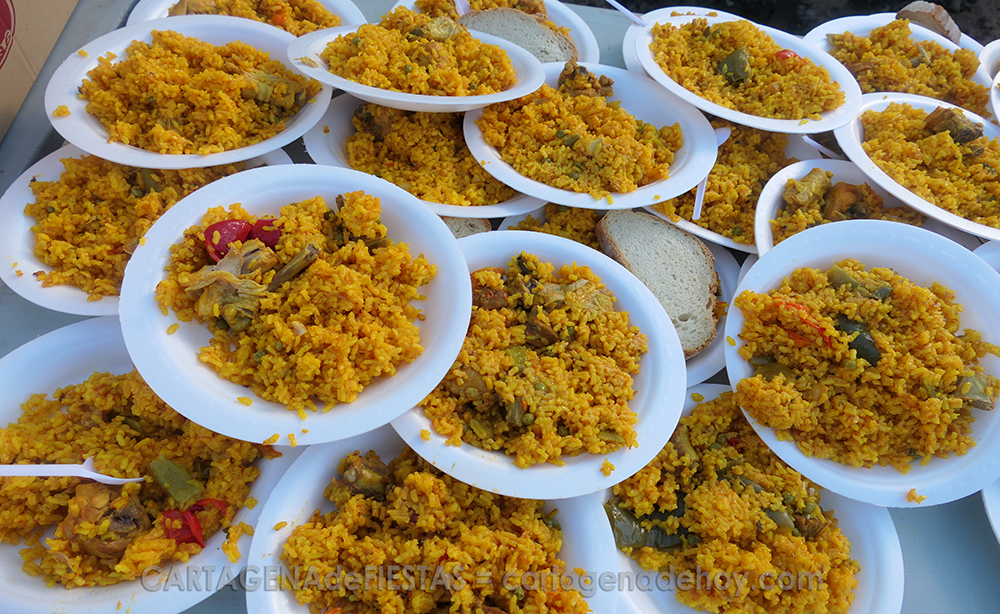 Es muy habitual ver anunciado en muchas fiestas lo de concurso de paellas. Es un error. La paella es sólo valenciana y se elabora en un recipiente denominado caldero en su origen. Lo que tenemos en esta tierras son arroces con diversos productos (pollo, conejo, costillejas, pulpo, verduras, bacalao, etc.), que, curiosamente, se elaboran en sartenes denominadas paelleras.