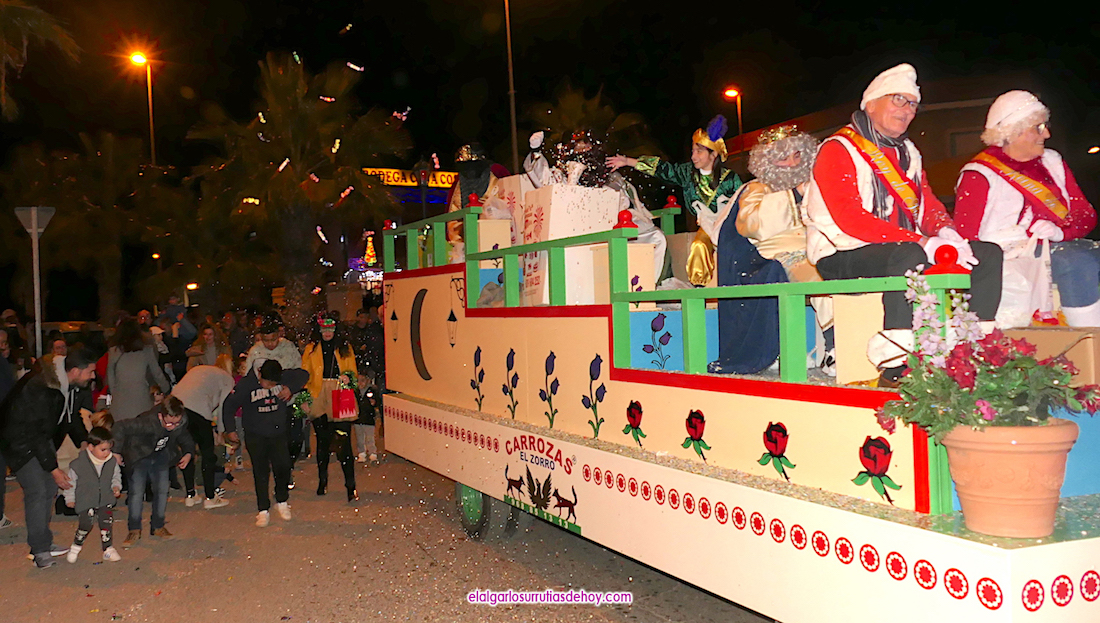 Melchor, Gaspar y Baltasar fueron acompañados por los reyes de las fiestas patronales en un desfile que multiplicó la participación de integrantes con respecto a las ediciones anteriores a la llegada de la pandemia gracias a la mayor implicación de comparsas y vecinos, que dieron más atractivos al pasacalles.