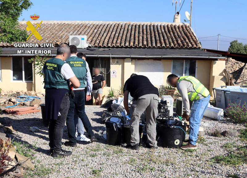 Tras varios meses de investigación, los guardias civiles ubicaron a varios de los sospechosos, uno de los cuales se encontraba viviendo en un inmueble ocupado en una zona rural próxima a Cartagena. También se averiguó que, en el interior de la vivienda usurpada, el grupo delictivo había instalado una plantación de marihuana tipo indoor.