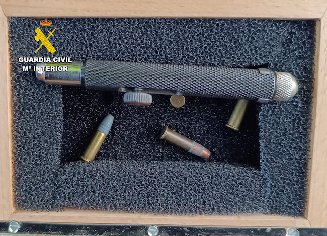 Tras identificar al conductor y al acompañante del vehículo, los guardias civiles realizaron un exhaustivo registro del mismo y hallaron oculto bajo el piso del maletero un maletín con una pistola simulada con forma de bolígrafo, así como abundante munición, cogollos de marihuana, cartones de tabaco de contrabando, herramientas, varios teléfonos móviles, GPS, una cámara fotográfica, prismáticos y un reloj de oro. Además se ha incautado el vehículo involucrado en los hechos ahora esclarecidos.