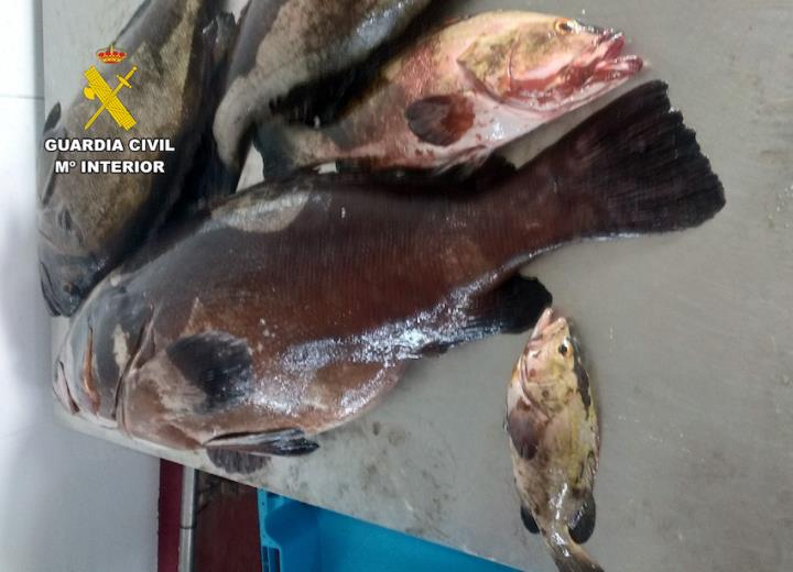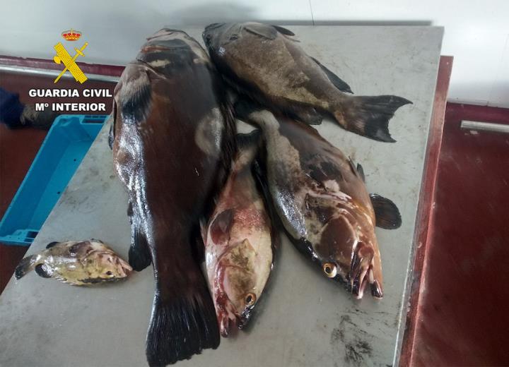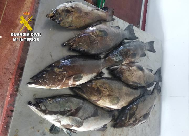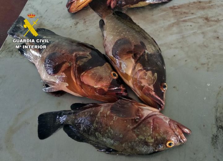 Durante la operación, los guardias civiles se han incautado de alrededor de 300 kilogramos de pescado, entre los que se encuentra especies como mero (Epinephelus marginatus), abadejo (Epinephelus fasciatus), cigarrón (Scyllarides latus), sargo real (Diplodus cervinus), pulpo (Octopus vulgaris) y corvina (Argyrosomus regius), así como la embarcación y los artes de pesca utilizados para la actividad delictiva ahora esclarecida.