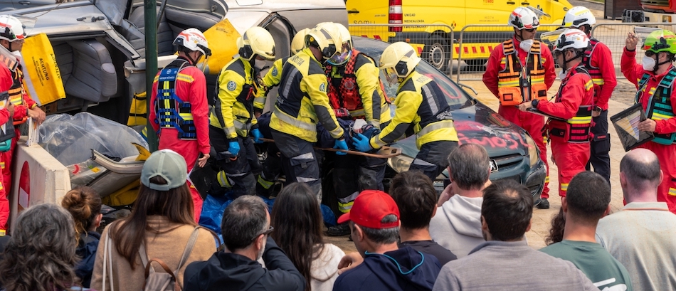 Los simulacros llevados a cabo en la explanada del puerto levantaron mucha expectación dentro de la programación del encuentro nacional sobre rescates en siniestros de tráfico que acoge hasta hoy Cartagena.