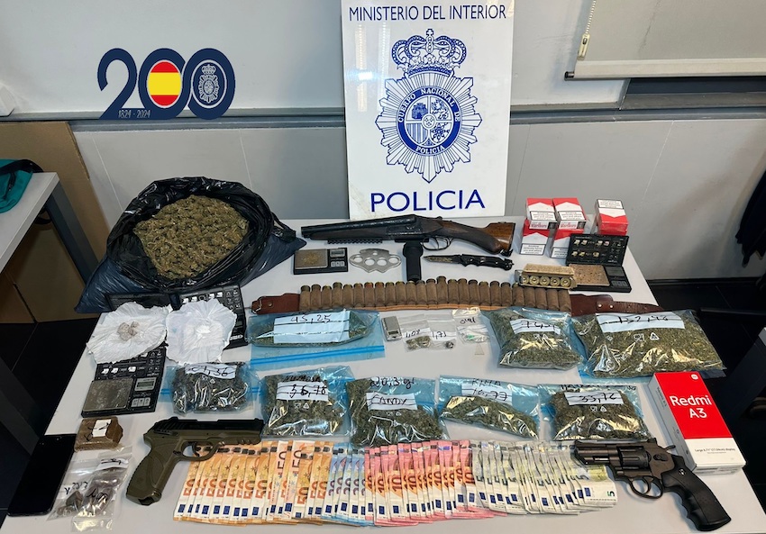 Tras varias semanas de investigaciones, la Policía Nacional efectuó dos entradas simultáneas con registros en inmuebles de Cartagena y de La Vaguada, hallándose en esta ultima una plantación de marihuana. También han sido intervenidas diferentes cantidades de hachís, cocaína, metanfetamina, una escopeta de cañones recortados y numerosa munición. Incluye VÍDEO