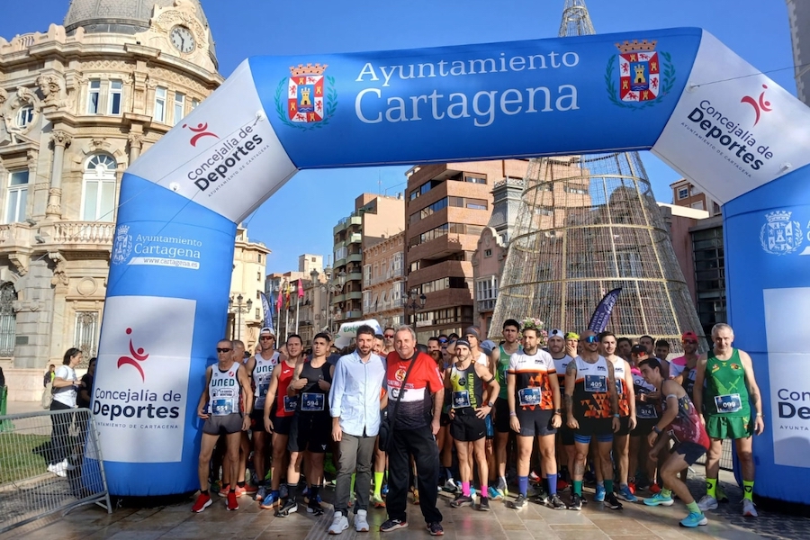 Cerca de un millar de personas, que agotaron todos los dorsales habilitados, participaron en la 'Carrera de los Cuatro Santos y marcha solidaria' que ha recorrido el casco histórico de Cartagena y que rindió homenaje a la Policía Nacional en su doscientos aniversario. José Miguel Candela y Sabina Rico fueron los ganadores masculino y femenino, respectivamente.