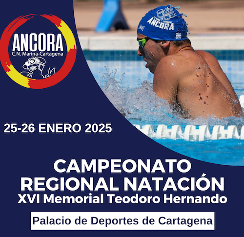 Cartagena acoge este fin de semana el 'Campeonato regional de invierno- XVI Memorial Teodoro Hernando', que tendrá como marco la piscina municipal del Palacio de Deportes. Tendrá lugar los dias 25 y 26, respectivamente, sábado y domingo, con unos doscientos cincuenta nadadors de 16 clubes de la Comunidad Autónoma. Entrada gratuita.