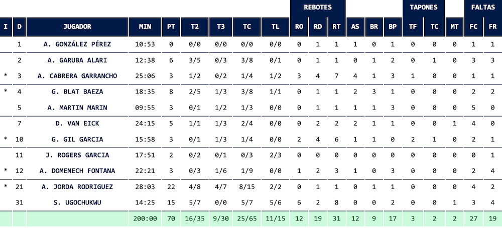 En el segundo cuarto, Jordá puso el empate (19-19) tras un parcial de 5-0, pero ya no hubo más marcadores equilibrados. Estudiantes, que firmó dos marcadores parciales de 0-8 en este cuarto, llegó a alcanzar los 11 puntos de diferencia (24-35) ante un equipo local que quería pero no podía pese a los cambios de jugadores y de tácticas. Ecuador del partido con 32-42, con la misma diferencia que luego sentenció el marcador final.