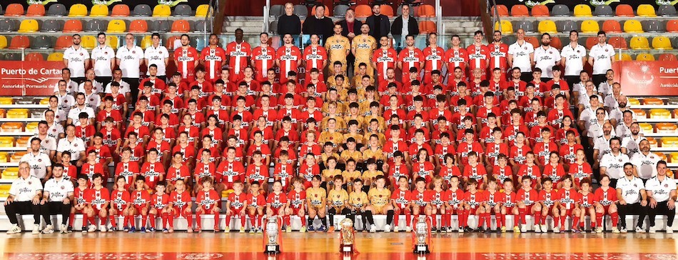 Leer más...Fotografía de todos los equipos de esta temporada, junto a sus equipos técnicos y la junta directiva, del 'melonero' club del Jimbee FS Cartagena.