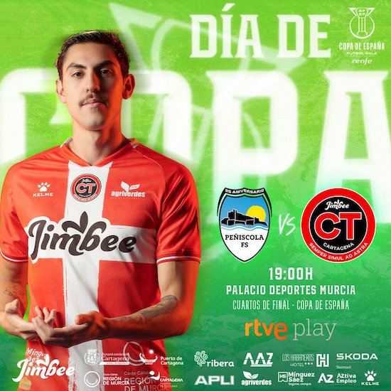 El equipo cartagenero de fútbol sala, dos meses después de conquistar la Supercopa y después de haberse reencontrado con las victorias en la liga, inicia hoy en Murcia el camino para traerse la Copa de España, siendo Peñíscola, vigente campeón de liga, su rival en cuartos de final. El partido será ofrecido en directo en televisión por Teledeporte.
