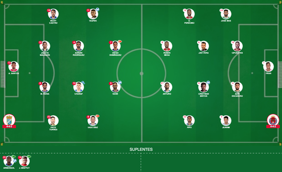 DEPORTIVA MINERA. Fran, Juanmi (Muller, minuto 90), Adri Escudero, Javi Vera (Arjona, 55), Britos, Rubén Mesa, Cifu (Morante, 55), Omar Perdomo, Arturo (Baradji, 65), Pipo y José Más.