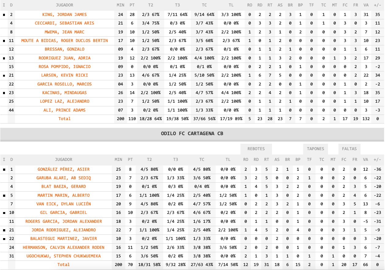 La barrera de los treinta puntos de distancia llegó con el 81-47 y los cuarenta se alcanzaron con el 94-53, siendo la máxima de 105-61. Partido para olvidar que alimenta las posibilidades de evitar el descenso de los jugadores locales de Rubén Perelló y complica algo el puesto de fase de ascenso de las huestes de Jordi Juste.