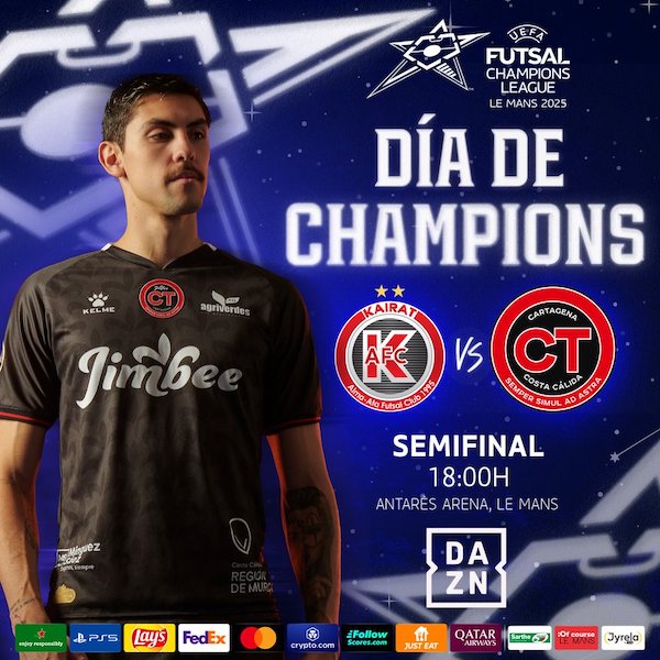 El Kairat Almaty de Kazajistán es el rival del Jimbee, un conjunto que ha ganado el título continental en tres ocasiones y que entrena el catalán Marlon Velasco. El Pabellón Antarès de Le Mans acoge esta final a cuatro, que también cuenta hoy viernes a las 21 horas con otra semifinal, que enfrenta a otros dos equipos que también han cosechado el título continental en varias ocasiones: el Sporting Clube de Portugal y el Palma Futsal de Mallorca. El domingo será en el mismo escenario el partido por el 3º y 4º puesto (17 horas) y la gran final (20 horas).