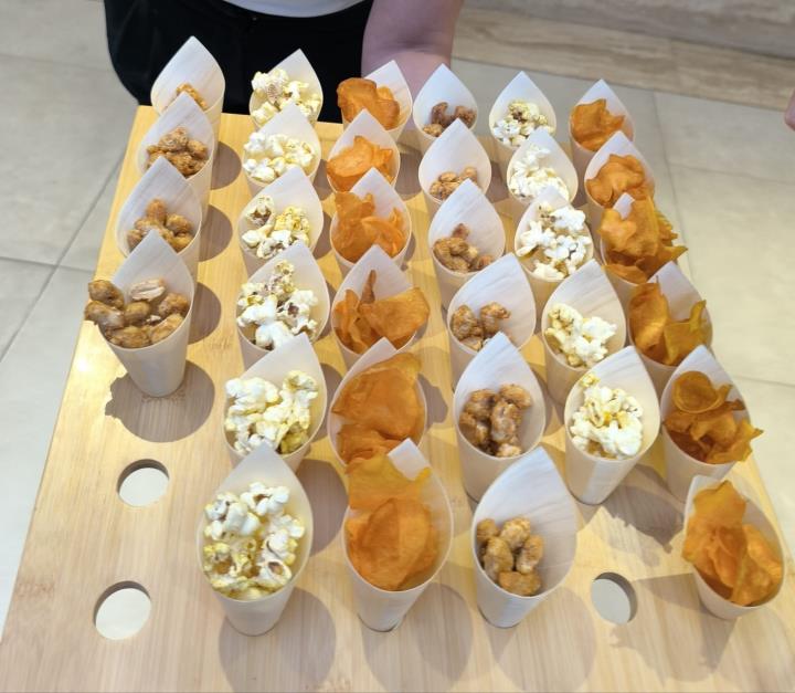 Al terminar, los asistentes degustaron un ágape ‘Alfonso XIII By Magoga’ en el que se sirvieron cucuruchos de cacahuetes garrapiñados, snack de boniato, palomitas con curry, tartar de atún, patatas bravas, pulpo y sobrasada y kokotxa de merluza.