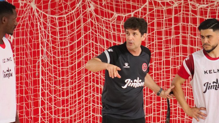 Jimbee FS Cartagena inicia las eliminatorias finales por el título de la Liga Nacional de Fútbol Sala frente al FC Barcelona, a quien Duda, técnico cartagenerista (en el centro en la foto adjunta), calificó hace tiempo de "favorito" para el título que defiende la escuadra aladroque. El partido de hoy se jugará por la tarde y el segundo, también en parqué catalán, pasa a la noche. Todos los partidos de la lucha por el título serán ofrecidos por Teledeporte.