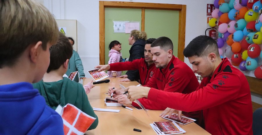 Jugadores del equipo de primera división de fútbol sala de Cartagena han visitado en las últimas fechas los colegios de Alumbres y del Gabriela Mistral en la Barriada de Hispanoamérica. Este fin de semana no hay jornada de liga.