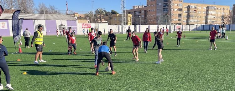 El campo de fútbol municipal Mundial-82 fue escenario de la tercera jornada 'Rugby-Cinta', organizado por el programa ADE del servicio de Deportes del Ayuntamiento de Cartagena y el Club Rugby Universitario.