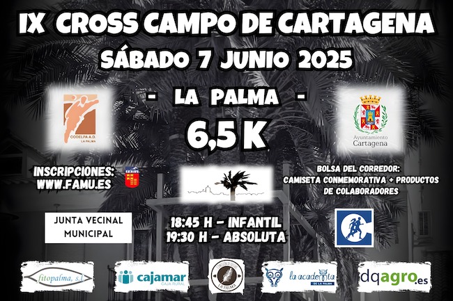 La prueba, que transcurre en buen parte por los campos de Cartagena, tiene una distancia de 6,5 kilómetros, con categorías para todas las edades. Es la novena edición de esta cita deportiva impulsada por Codelpa La Palma, el Ayuntamiento de Cartagena y la Federación de Atletismo de la Región de Murcia.