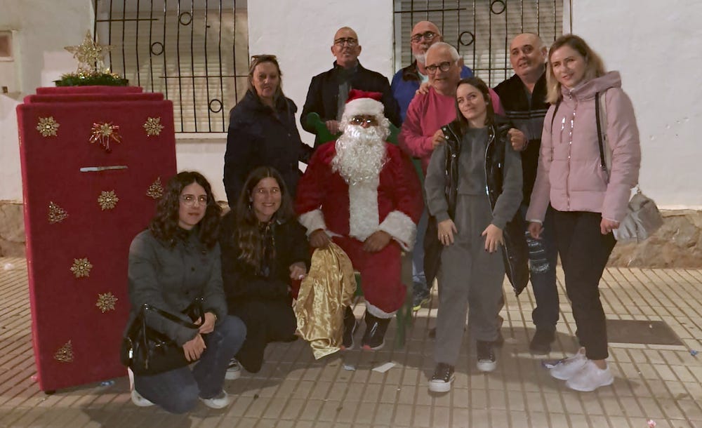Desde la asociación de vecinos que preside Juan Gómez Ayala se invita a los vecinos a partir del programa preparado para esta Navidad: "Vive con nosotros la Navidad". Además, se da las gracias a Servicios Sociales, a la concejala, a Pepe Colmena y a Sole, quienes han pagado los caramelos y las charanga que ha acompañado la presencia de Papá Noel.