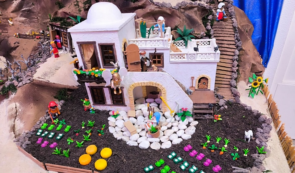 Montado por Antonio Nicolás y José María Alcalde con más de dos mil piezas, está instalado en la sala 'Domingo Bastida' de la Real Sociedad Económica de Amigos del País de la calle del Aire de Cartagena y servirá para ayudar a la renovación del trono de la agrupación del Cristo del Prendimiento de la Cofradía California.