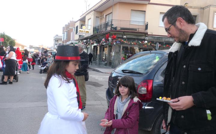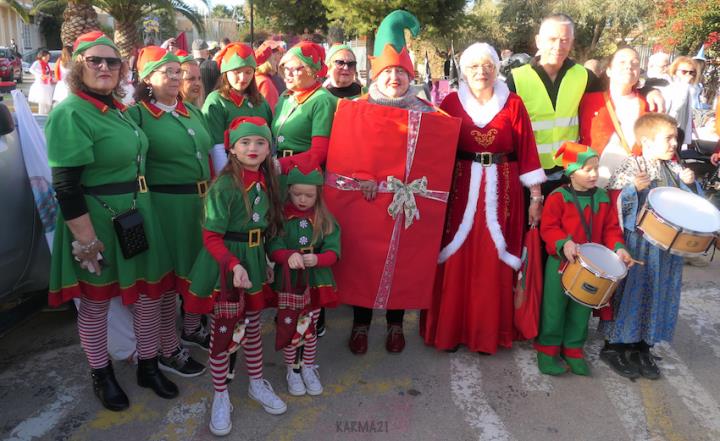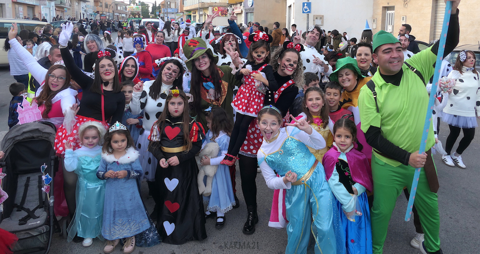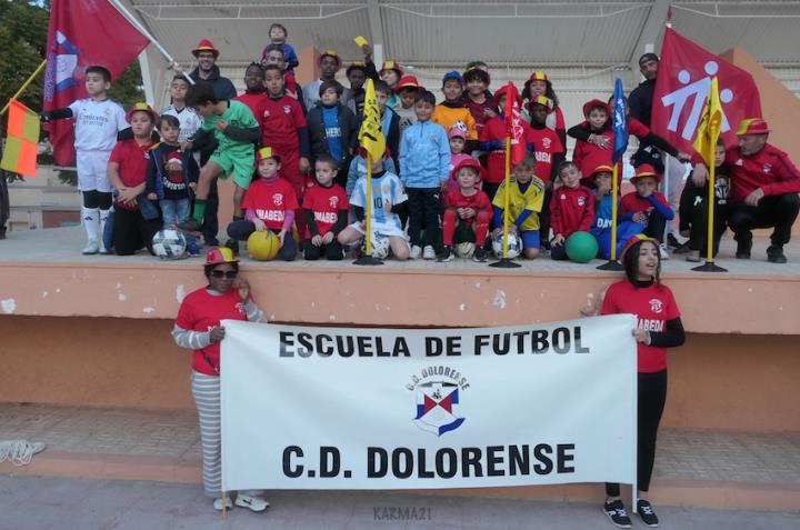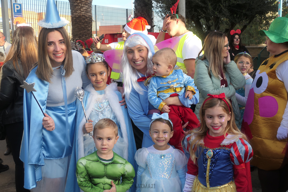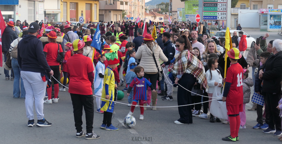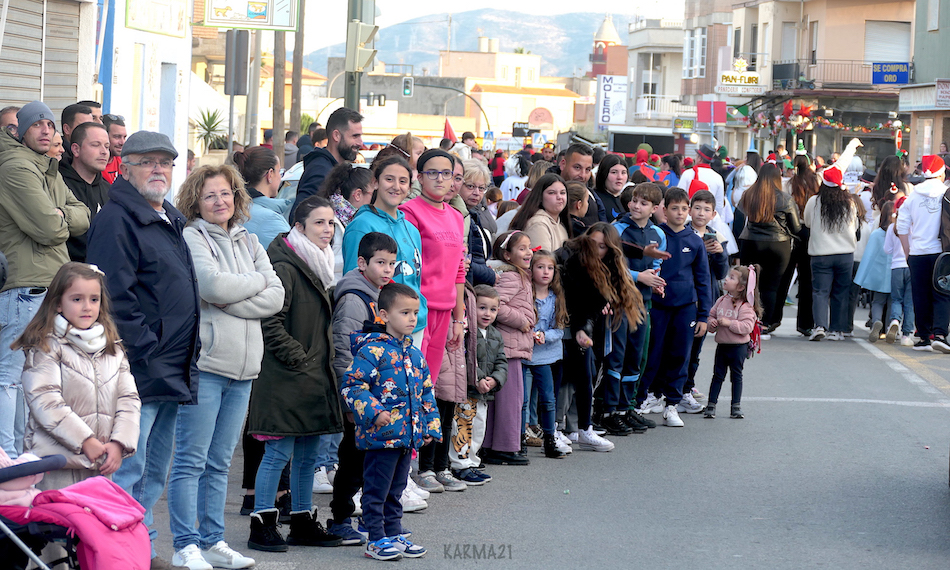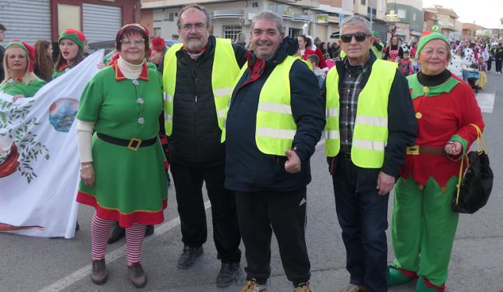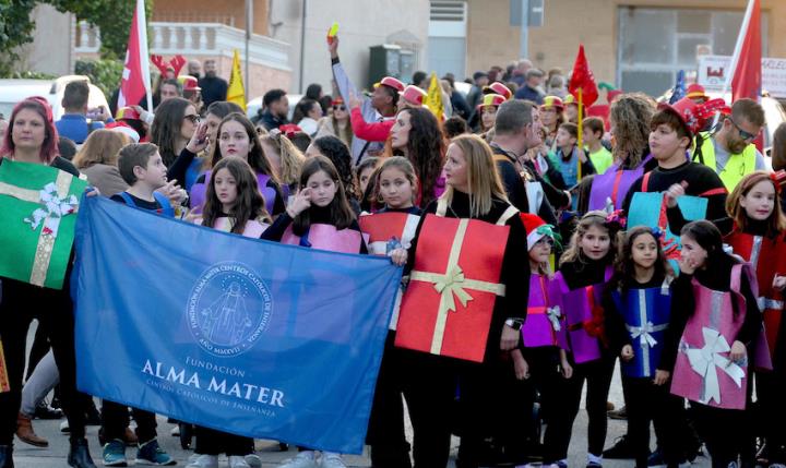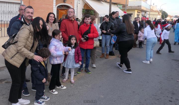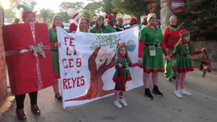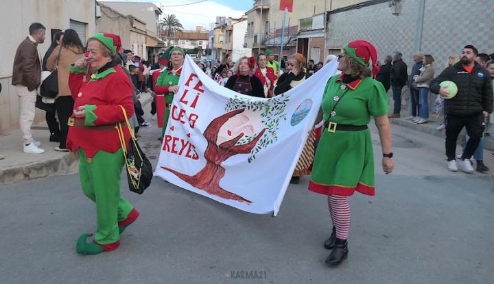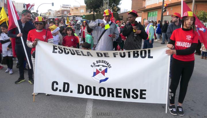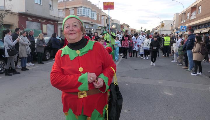 Los primeros eran regalos andantes y los segundos, personajes populares del mundo Disney. Entre ambos marcharon la Escuela de Fútbol del Dolorense, representando la disputa de partidos con balones con cuerda para que no fueran del espacio que ocupaban, y el grupo femenino de Cartagonova y otros colectivos, con disfraces de elfas.