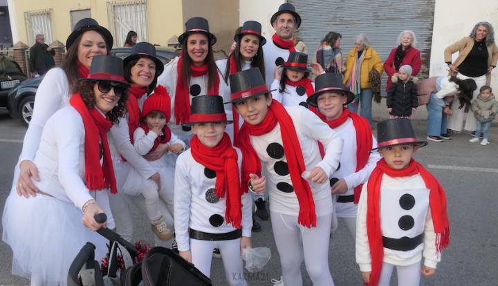 El desfile continuaba con los componentes de la comisión de fiestas representando muñecos de nieve y dando paso al joven colectivo navideño de Áncora.