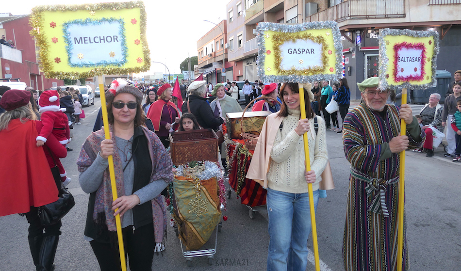 El recorrido fue corto, de apenas kilómetro y medio, con salida desde Salesianos hasta la calle Conesa Calderón, desde donde se giró hacia la plaza de la Virgen de los Dolores, donde culminó la cabalgata y donde los Reyes Magos recibieron, en el escenario, a numerosos chavales. Por cierto, los emisarios de Oriente fueron Alfonso (Melchor), Gaspar (Samuel Peñaloza) y Baltasar (Ramón Soler).
