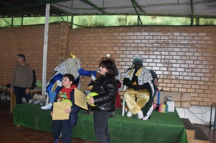 Melchor, Gaspar y Baltasar no faltaron al tradicional encuentro con los vecinos de Molino Derribao en una matinal lluviosa, teniéndose que suspender el desfile y trasladar el acto del escenario a la zona techada, pero no mermó la alegría de este día, dando paso a una gran convivencia gastronómica.