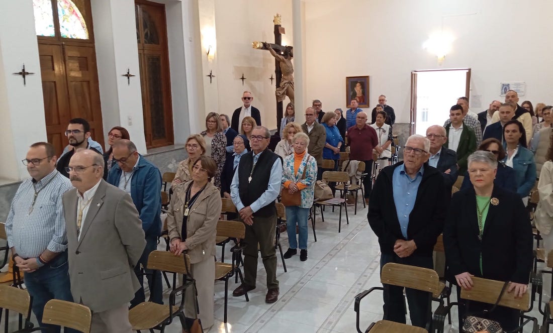 Desde allí, han ido rezando los misterios gozosos por las calles del Casco Histórico de Cartagena hasta llegar a la Capilla del Colegio del Patronato del Sagrado Corazón de Jesús donde D. Lázaro Gomáriz López, capellán de la cofradía, ha oficiado una Eucaristía.